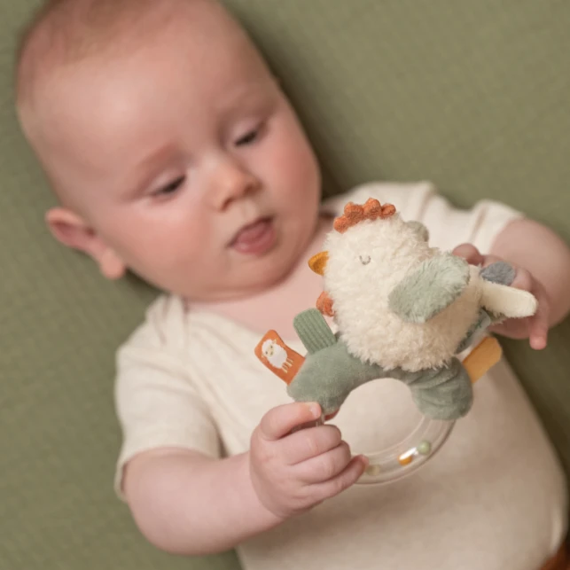 Get ready for a symphony of joy with this charming chicken-shaped ring rattle! Encourage your little one’s curiosity as they grab, twist, and shake this delightful toy. With wings to clap and a soft belly to rub, the transparent ring filled with three small beads creates a playful rattling sound, enhancing hand-eye coordination and stimulating your baby’s senses.