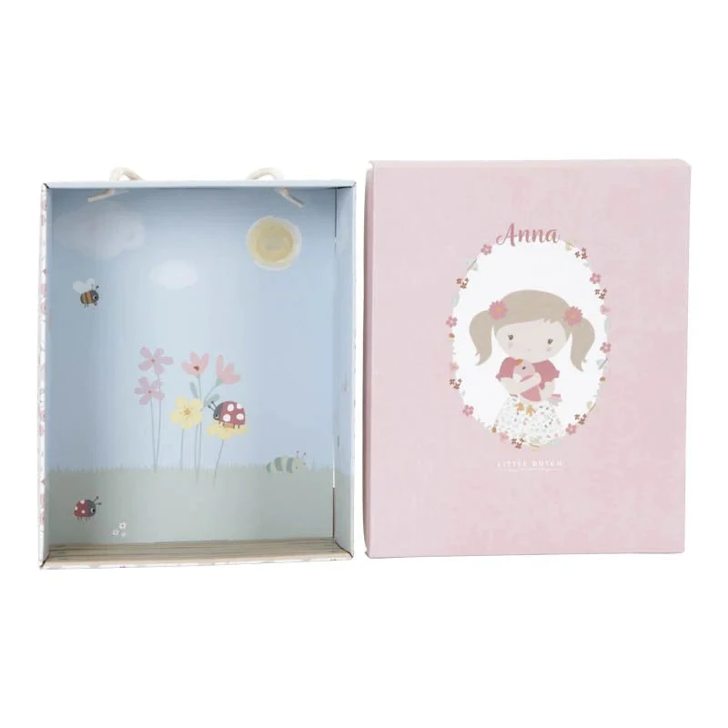 The delightful Little Dutch Anna Cuddly Doll is destined to capture the hearts of your little ones. With a penchant for frolicking in flower-filled gardens alongside her feathered friend, Anna quickly becomes a cherished companion. Whether embarking on adventures or seeking comfort during naps and bedtime, Anna’s lovable presence is sure to bring joy, and her charming storage box makes her an excellent gift choice.