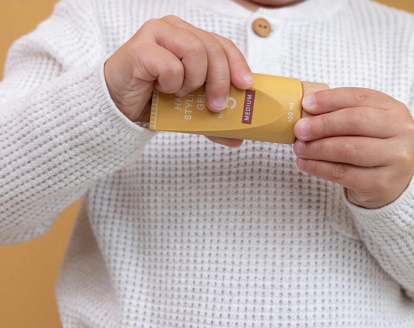 Step into the world of professional hairstyling with our charming Little Dutch Wooden Hair Salon Set! With an adjustable waist belt for that authentic touch, your little one can unleash their creativity on hairdos for friends, family, and even dolls. Complete with toy scissors, a blow dryer, straightener, clippers, comb, shampoo, hair spray, and styling gel, it’s everything needed for a fabulous salon experience. Let the styling adventures begin β your little stylist is sure to have a blast!