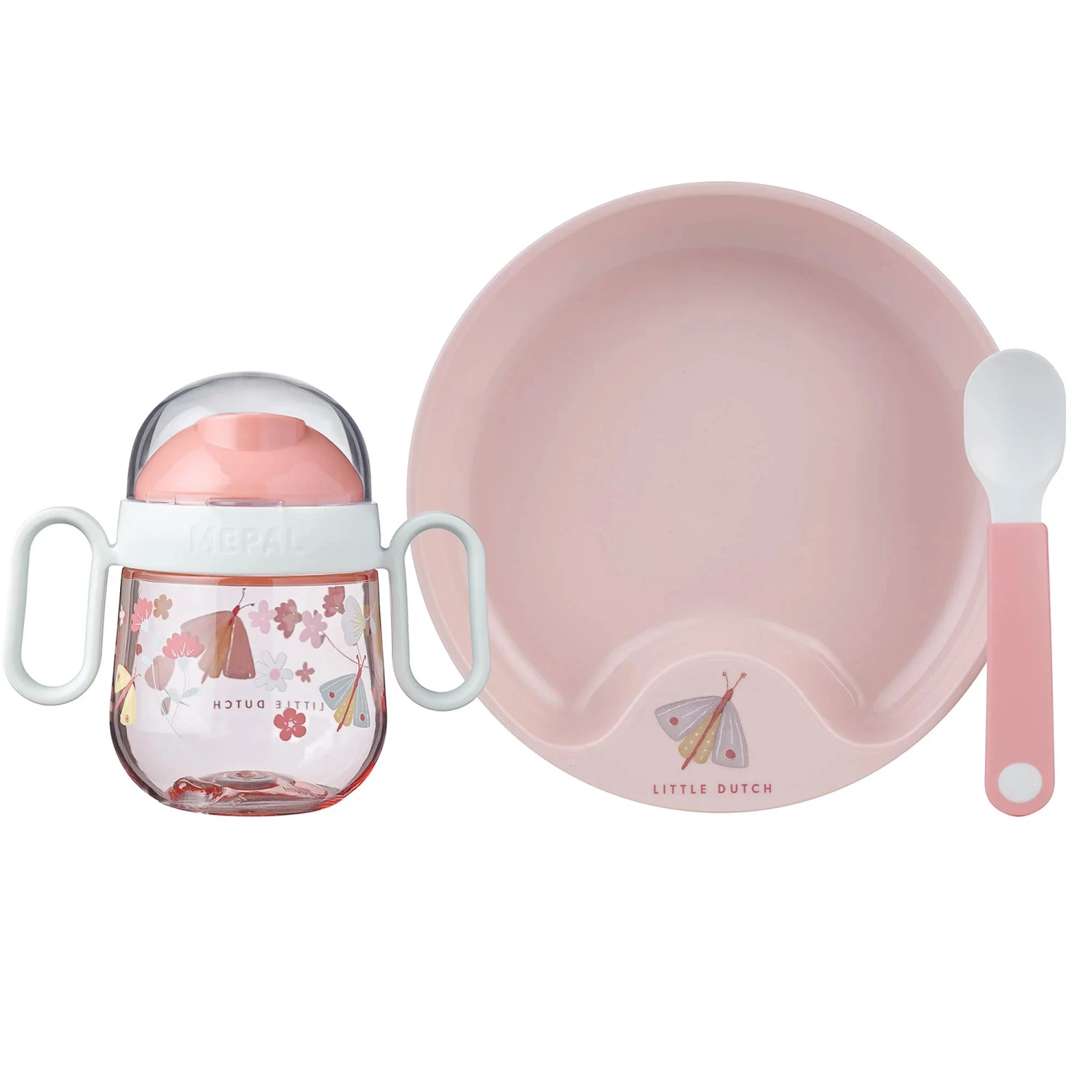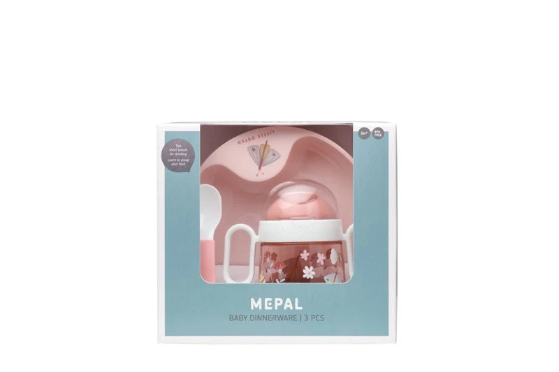 Get your plate, spoon and cup, it’s time for dinner! You will know when your baby is ready to self-feed and drink as soon as the food on your plate is not safe anymore. It’s time to take the first steps and you want them to go smoothly. This Mepal Mio dinnerware set includes all your little one needs: a straw cup that’s leakproof with a slide closing, a trainer plate with high raised edges, round corners and anti-slip base and, of course, a spoon to scoop and eat. All pieces of this set are light pink and decorated with the cheerful illustrations from the Flowers & Butterflies collection so that everyone at the table knows who’s dinnerware this is. Enjoy your family dinner!
