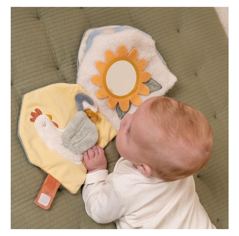 Babies will stay endlessly entertained with this vibrant activity book shaped like a charming Little Farm barn. Packed with various materials and activities, including a mirror, rattle, and hidden toys, there’s so much to discover. The soft book, adorned with different touch labels, not only stimulates the senses but also aids in the development of hand-eye coordination.