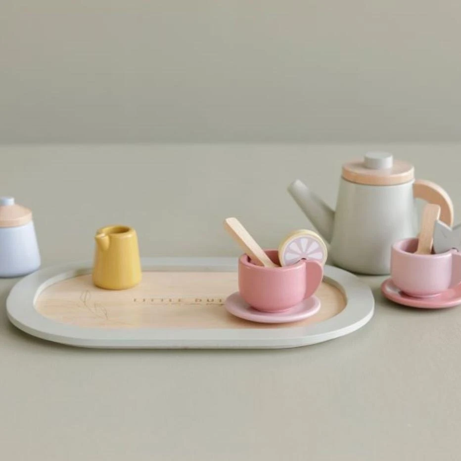 Let the tea party commence with our adorable Wooden Tea Set! Delight your little one as they play host, serving up delightful cups of tea with all the fixings—milk, sugar, and even a slice of lemon or sprig of mint! This charming wooden set creates the perfect ingredients for a whimsical tea party, allowing your child to host delightful gatherings with their friends.